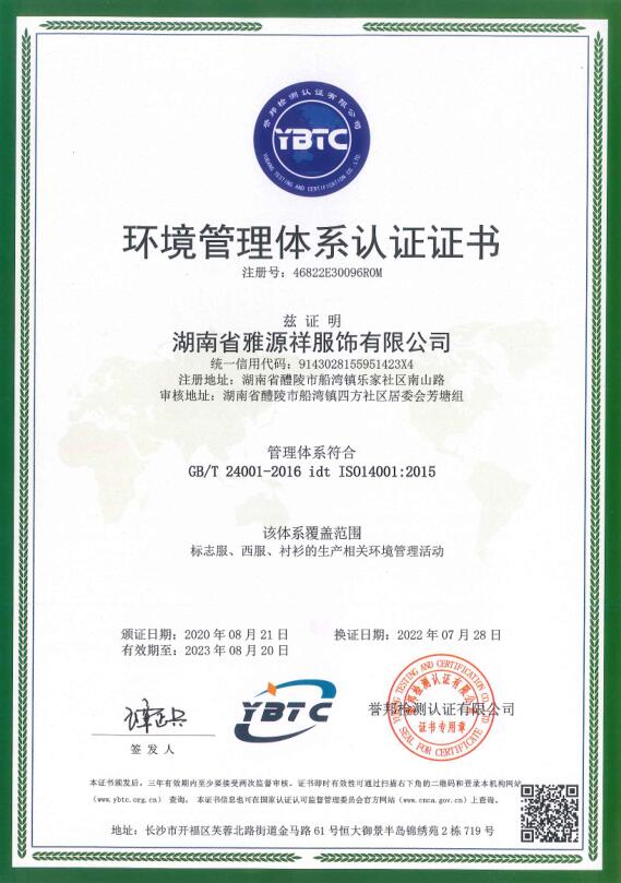 1、企業概況 湖南省雅源祥服飾有限公司地處湘贛邊境素有瓷城之稱的醴陵郊區,企業創建于1995年,是行政執法制服、被裝的生產企業。2、組織機構 跟隨改革開放的步伐,我公司不斷發展壯大,公司董事會下設總經理辦公室、生產部、技術部、質檢部、財務部、采購部、業務部等部門,下設有流水線西服生產車間、標志服生產車間、襯衣生產車間、... [更多]